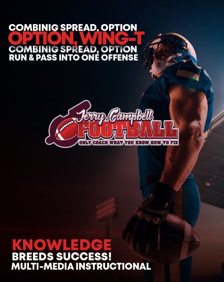 Combining Spread, Option, Wing-T and Traditional Run & Pass Into One Offense is 347 pages illustrating Formations, Traditional run and passing game featuring Play Action, Dropback, Sprint Out, as well as a No Huddle approach for implementing a fast pace offense using codes. This manual also offers a Complete installation of your offensive Line, Receivers, Backs and QB’s, Option Game, RPO’s, a foundation for implementing a Pistol Wing-T and much, much more.