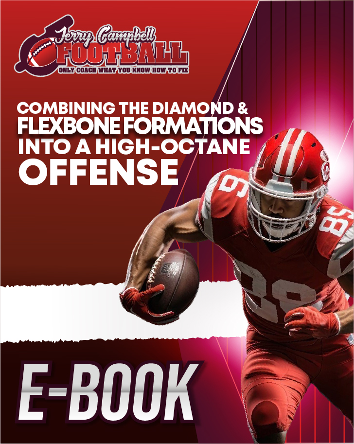 The following manual is 275 pages and designed to take coaches interested in installing the Diamond and Flexbone formation Offense through the complete installation with terms and illustrations. The installation of the Diamond and Flexbone is designed to formation an offense into controlling the box, spreading the defense with multiple formations, motion, misdirection plays and reading uncovered receivers. The difference between the Diamond Offense and the Hybrid Flexbone Offense is the location of the Wing Backs which with the Diamond formation move them from Wings to Backs located at the same depth as the Quarterback in the Pistol.